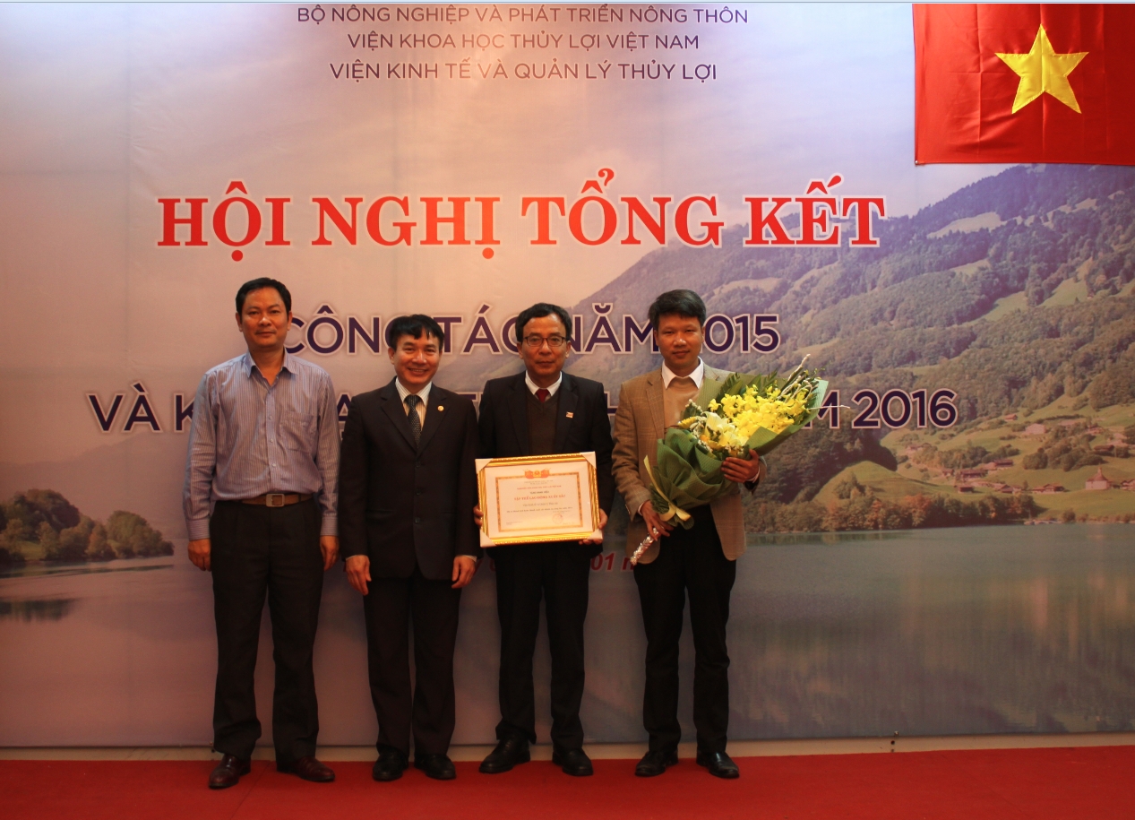 Lãnh đạo Viện KT&QLTL thay mặt cho tập thể Viện nhận Bằng khen của GĐ Viện KHTL VN