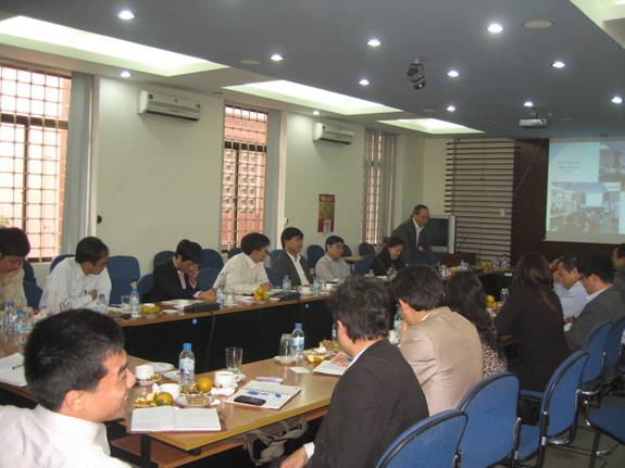 04/12/2015PGS.TS Lê Mạnh Hùng, Giám đốc Viện đã báo cáo với Thứ trưởng về cơ cấu tổ chức, chức năng nhiệm vụ của Viện Khoa học Thủy lợi Việt Nam và các kết quả khoa học công nghệ nổi bật của Viện trong hơn 50 năm xây dựng và phát triển. Trong buổi làm việc, Thứ trưởng và đoàn công tác cho rằng lĩnh vực Thủy lợi và Thủy sản có mối quan hệ khăng khít lẫn nhau, hỗ trợ thúc đẩy nhau cùng phát triển. Thủy lợi và thủy sản đều là hai lĩnh vực quan trọng của Bộ Nông nghiệp và Phát triển nông thôn, vì vậy các nhà khoa học Thủy lợi cần có sự hỗ trợ và hợp tác với các cơ quan, đơn vị nghiên cứu trong lĩnh vực Thủy sản để cùng giải quyết các vấn đề bức xúc hiện nay. Thứ trưởng cho rằng với đội ngũ cán bộ khoa học hùng mạnh, với cơ sở vật chất nghiên cứu hiện đại và truyền thống tâm huyết với khoa học của Viện KHTLVN thì các vấn đề bức xúc trong lĩnh vực Thủy sản sẽ được nghiên cứu giải quyết như: hiện tượng bồi lấp cửa sông, luồng lạch các khu neo đậu và cảng cá; vấn đề nghiên cứu xây dựng định mức Kinh tế kỹ thuật, tiêu chuẩn quy chuẩn trong lĩnh vực Thủy sản; vấn đề quy hoạch Thủy lợi phục vụ nuôi trồng Thủy sản; công tác đào tạo phát triển cán bộ;… Thứ trưởng cũng mong muốn Viện tham gia nhiều hơn và sâu hơn nữa về các chương trình khoa học công nghệ trong lĩnh vực Thủy sản.