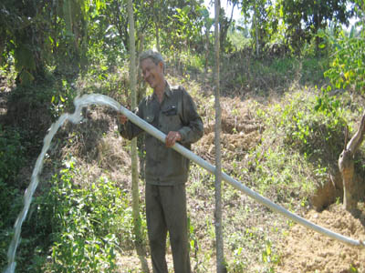 Con đường từ UBND xã Sông Cầu đến trang trại của ông Chạng dài khoảng 4km nhưng đường đi rất khó khăn. Trao đổi về cách làm ăn của mình, ông tâm sự: "Những năm đầu lập nghiệp tại đây, tôi gặp khó khăn chồng chất vì nương rẫy ở bên kia sông Cầu. Mùa nắng hạn phải bơm nước tưới cho vườn cây, mùa mưa phải dùng ghe xuồng để sang nương rẫy chăm sóc, thu hoạch". Để lấy ngắn nuôi dài, ông trồng các loại cây như chuối, chanh, bưởi. Được Nhà nước hỗ trợ giống, ông đầu tư trồng 7ha keo, dầu, hương, sao, bằng lăng. Ở Sông Cầu ruộng chỉ làm một vụ, nương rẫy chỉ xanh vào mùa mưa, còn mùa nắng thì đất khô cằn, nứt nẻ. Làm gì để có nước tưới cho những ruộng lúa, rẫy bắp trong mùa khô luôn nung nấu trong ông. Ông Chạng nghĩ nhiều lắm nhưng chưa tìm được cách làm hiệu quả. Rồi ý tưởng chợt lóe lên trong đầu ông, tại sao không lợi dụng sức nước để tạo thành chuyển động đưa nước lên cao. Nghĩ là làm, ông nghiên cứu lắp đặt ống, chạy thử cánh quạt nước... nhưng đều thất bại. Không nản chí, ông lại tiếp tục nghiên cứu, chỉnh sửa. Ý chí khát khao làm giàu, khát khao sáng chế đã thôi thúc ông làm việc ngày đêm, không biết mệt mỏi và chiếc máy bơm nước chạy bằng sức nước do ông sáng chế đã hoàn thành. Để tưới cho hơn 2ha vườn đồi, nếu dùng nhiên liệu chạy máy bơm sẽ khá tốn kém. Ông so sánh, nếu dùng nhiên liệu tưới cây trong mùa nắng hạn sẽ tốn khoảng 2.400 lít dầu, nhưng máy bơm chạy bằng sức nước do ông sáng chế vừa tiết kiệm tiền của, vừa không gây ô nhiễm môi trường. Máy bơm nước tự động không cần nhiên liệu của ông Phan Chạng sáng chế hoạt động theo nguyên tắc: Sức nước chạy cánh quạt qua trục chuyền 1/28 tua, tức là cánh quạt chạy 1 vòng thì đầu bơm nước chạy 28 vòng, cánh quạt kéo đầu bơm đẩy nước lên, có công suất 30 - 50 m3/giờ, hoạt động liên tục ngày đêm. Tiếng lành đồn xa, chuyện về người nông dân sáng chế ra máy bơm nước không cần dùng nhiên liệu được nhiều nông dân trong và ngoài tỉnh đến tham quan, học tập. Họ đến nhà, đến nương rẫy nhờ ông chỉ cho cách làm máy. Điều đáng nói là chi phí cho một chiếc máy này chỉ tốn khoảng 1 triệu đồng với những nguyên liệu thô sơ có sẵn ở địa phương. Có máy, bà con từng bước chuyển dịch cơ cấu cây trồng, đưa những loại cây có giá trị kinh tế cao vào sản xuất. Màu xanh đã phủ trên nương rẫy, đem đến những mùa cây trái bội thu. Đến nay, ông Chạng đã giúp trên 10 hộ nông dân ứng dụng thành công, phù hợp với những mô hình làm vườn ở địa hình đồi núi, gần sông suối, vừa dễ làm, vừa ít tốn kém. Sáng kiến của ông Chạng đã đoạt giải Ba tại Hội thi sáng tạo khoa học - kỹ thuật tỉnh Khánh Hòa lần thứ 2. Tuy nhiên, với ông, phần thưởng lớn nhất chính là lợi ích kinh tế mà chiếc máy bơm mang lại đang góp phần thay đổi diện mạo cho vùng đất nghèo khó Sông Cầu. |