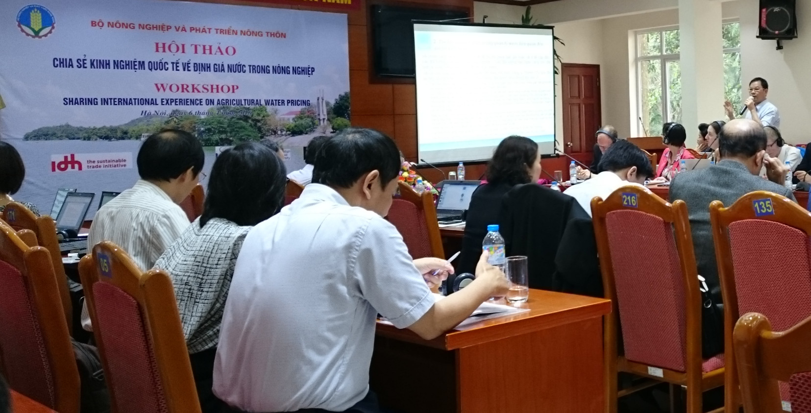 TS.Đặng Ngọc Hạnh, Phó viện trưởng Viện Kinh tế và Quản lý Thủy lợi trình bày tại hội nghị (Ảnh IWEM)