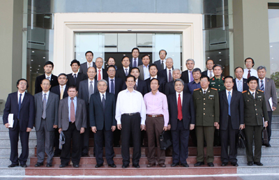 Thủ tướng Nguyễn Tấn Dũng cùng các thành viên Hội đồng Chính sách Khoa học và Công nghệ Quốc gia. - Ảnh: VGP/Nhật Bắc